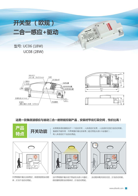| 開關(guān)型 (歐規(guī)) 二合一感應(yīng) + 驅(qū)動UC06 (18W) / UC08 (28W) | |