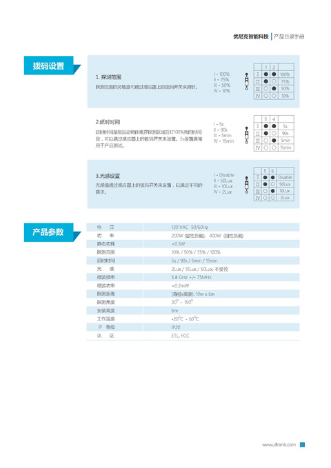 | 光感 | 2lux/10lux/50lux, 不受控 |
