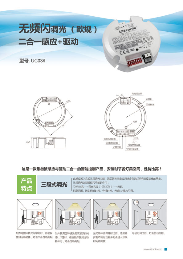 無(wú)頻閃調(diào)光歐規(guī)二合一感應(yīng)+驅(qū)動(dòng) UC03/I