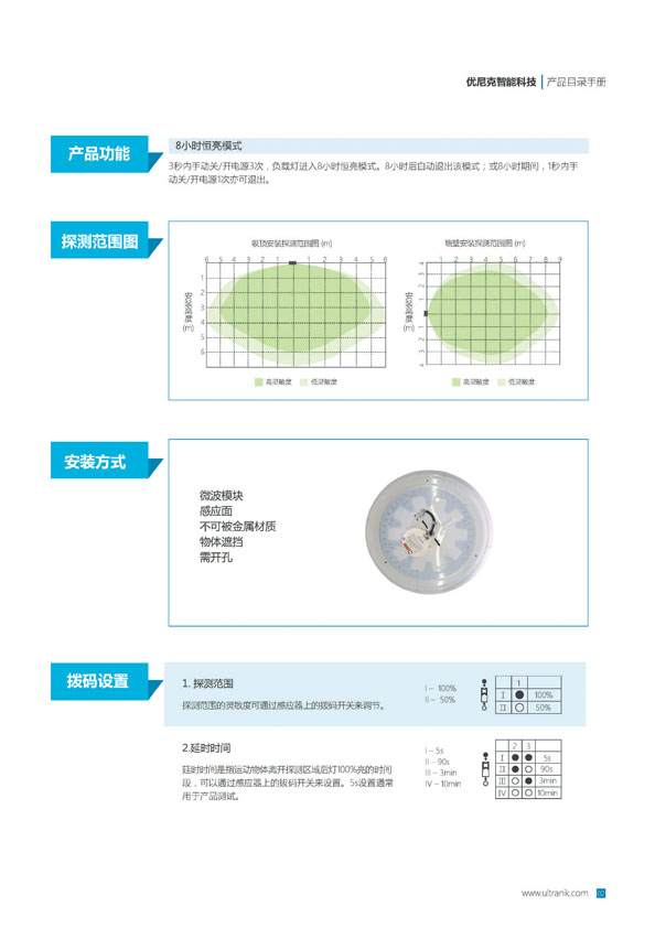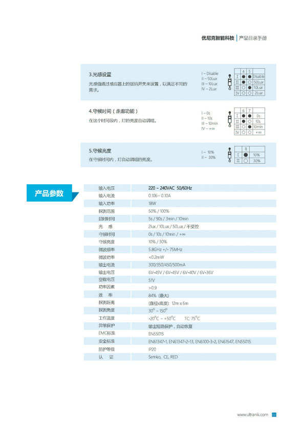 | 光感 | 2lux/10lux/50lux/不受控 |