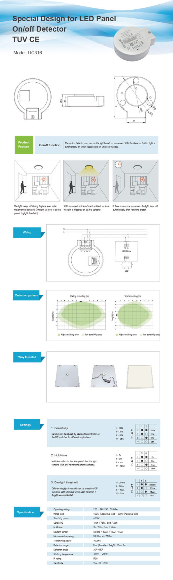 | Daylight sensor: | Disable / 30Lux / 15Lux / 5Lux |