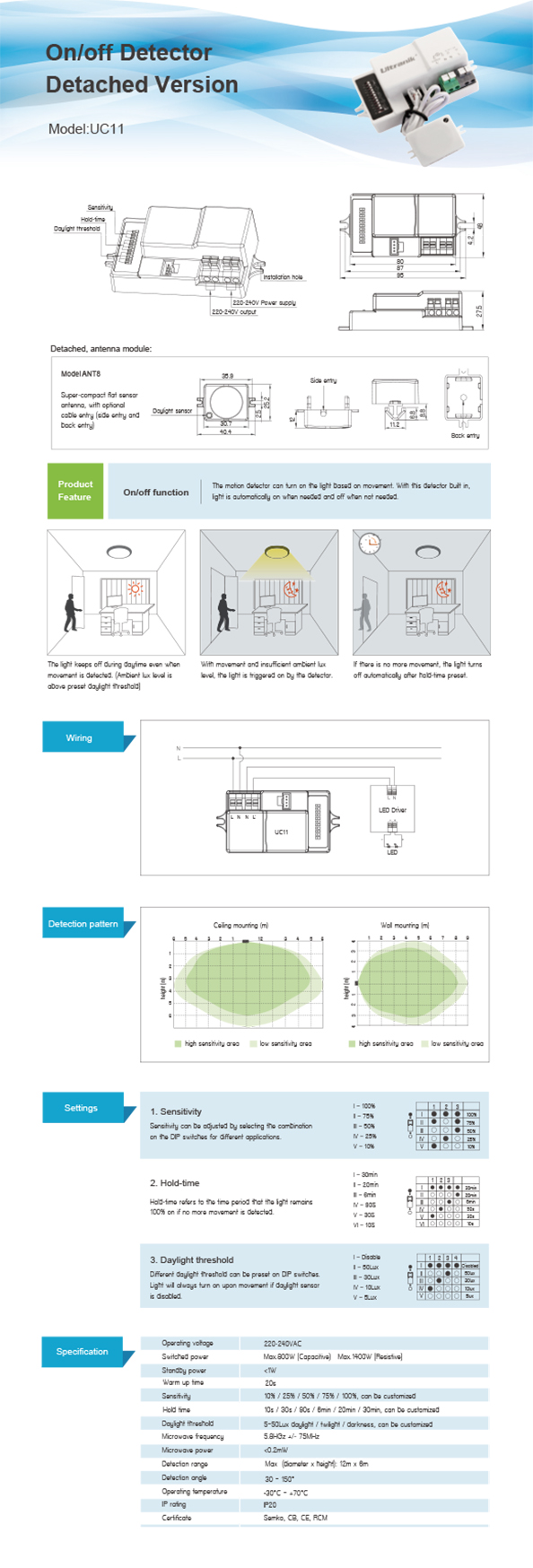 | Daylight threshold: | 5~50Lux daylight / twilight / darkness, can be customized |