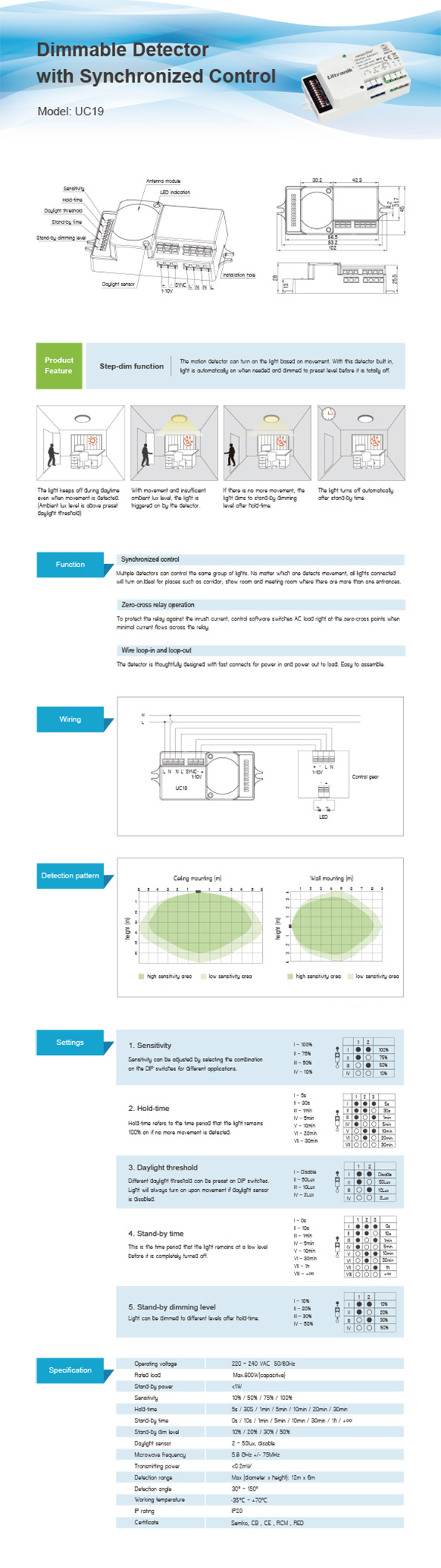 | Stand-by dim level: | 10% / 20% / 30% / 50% |