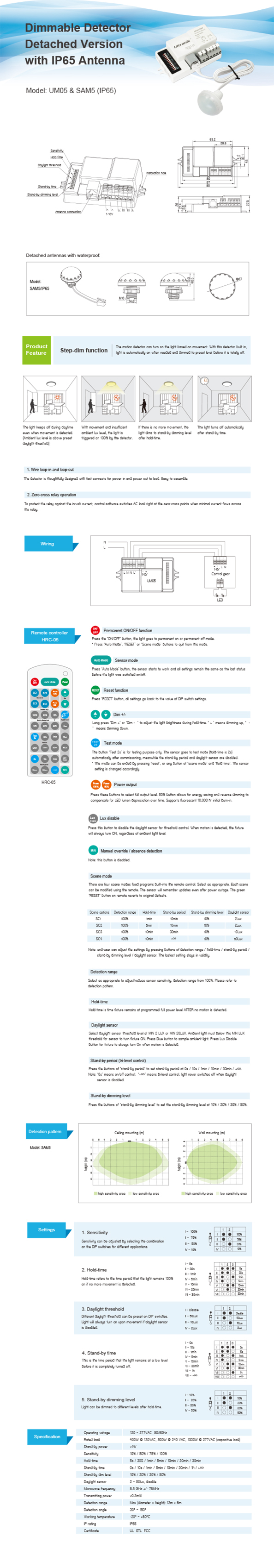 Dimmable Detector Detached Version with IP65 Antenna UM05 & SAM5